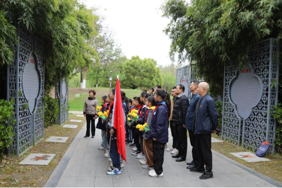 随后,来到目澜洲烈士陵园,老中青党员与少先队员整齐列队,在烈士墓前,大家依次献上亲手制作的纸花,寄托对先烈的无尽追思。为了让学生们能够更了解先烈事迹,默哀仪式结束后,五老劳阿姨还带领孩子们参观烈士陵园,并为他们讲述一个个震撼人心的红色故事。“这些故事不仅是历史记忆,更是激励我们践行梦想、努力学习的力量。”李同学说。
