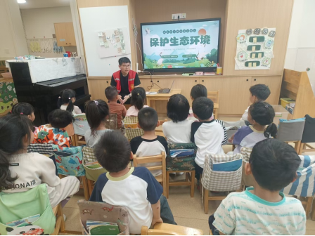 活动以趣味互动为主,志愿者用卡通图片和动画视频向小朋友们讲解了地球的基本知识以及“为什么要保护环境”、“如何垃圾分类”、“怎样节约用水用电”等环保知识。之后幼儿园老师带领小朋友们通过游戏的方式模拟垃圾分类,让小朋友们了解每种颜色的垃圾桶应该对应放进去什么垃圾,巩固了垃圾分类的相关知识。