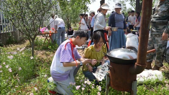 活动开幕式上,青年企业家代表向学生代表郑重授予 “薪火传承”旗帜,象征奋斗精神代代延续。“野火饭大作战”环节中,学生与青年企业家分组协作,共同烹饪野火饭,现场炊烟袅袅、香气四溢,“最佳厨艺小组”的评选更添欢乐氛围。在“薪火相传座谈会”上,青年企业家分享创业故事,结合农耕“春种秋收”的道理,引导学生理解成长与奋斗的关系,耐心解答学生关于学习和成长的问题。随后的放风筝比赛,学生们放飞亲手绘制的风筝,寓意放飞梦想。