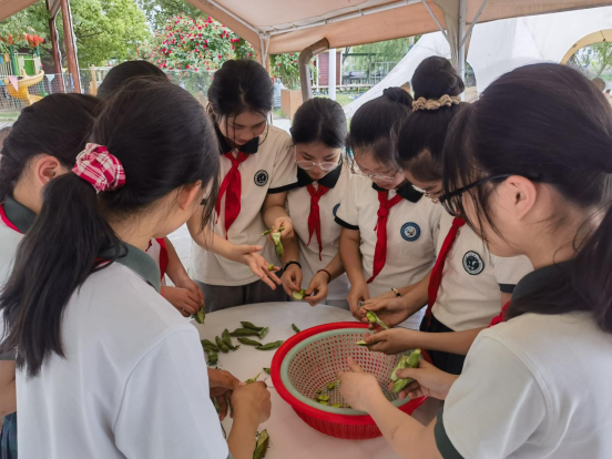 活动开始了,一颗颗饱满的蚕豆,在同学们灵活的指尖下迅速褪去外衣。剥蚕豆竞赛现场,紧张而又充满乐趣。野火饭,承载着几代人的童年记忆。同学们分工协作,拾柴、生火、煮饭……炊烟袅袅中,大家体会到劳动的不易与合作的力量。在柴火的炙烤下,食材逐渐融合,香气四溢。美味在舌尖绽放,友情在心底升温。
