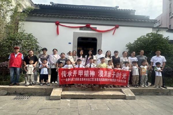 2025年5月22日上午,江苏省苏州市吴江区盛泽镇圣塘村关工委携手沭恩幼儿园30余名师生,开展"传承开甲精神 浸润亲子时光"主题研学活动。