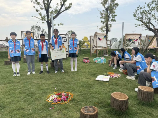 紧接着,一个充满创意的环节——“自然拼画行动” 拉开帷幕。“小委员们”带着自己小组绘制的曼陀罗作品,走进基地周边的田野、草丛,在大自然中寻找与画中相似的材料。收集好材料后,“小委员们”在基地的草坪上席地而坐,开始将这些自然素材按照曼陀罗画作的模样进行拼贴。用麦穗勾勒线条,用小石子固定形状。原本平面的画作,在大自然的馈赠下,逐渐有了立体的轮廓。不一会儿,一幅幅别具一格的自然曼陀罗拼画便呈现在眼前。