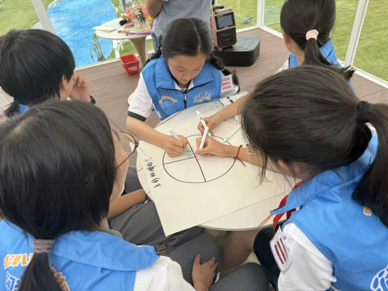 拼画结束后,每个小组的组长轮流分享自己小组的作品与创作思路。通过分享,“小委员们”不仅加深了对彼此的了解,也在相互交流中获得了情感共鸣。心理老师针对每个孩子的作品进行了耐心细致的解读与引导,帮助孩子们更好地认识自己的内心世界,鼓励他们以积极健康的心态面对生活与学习。