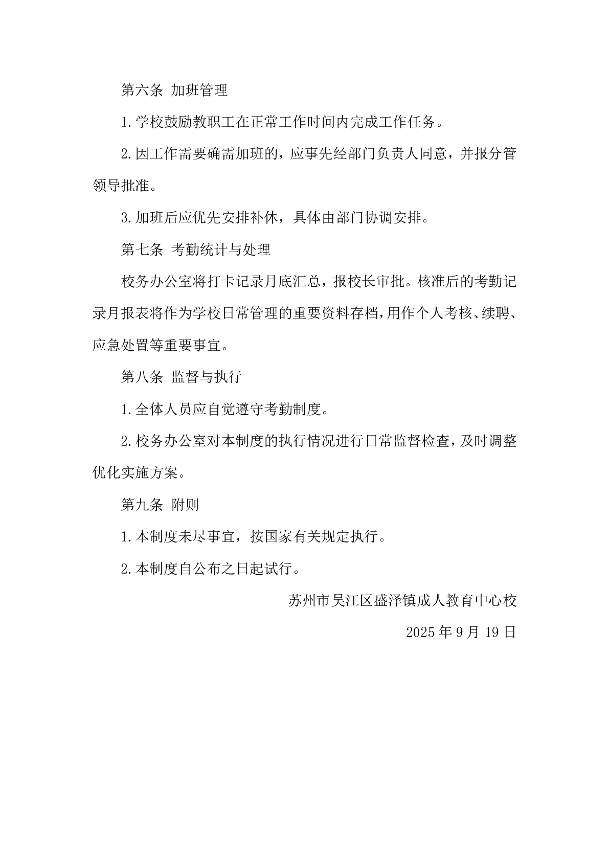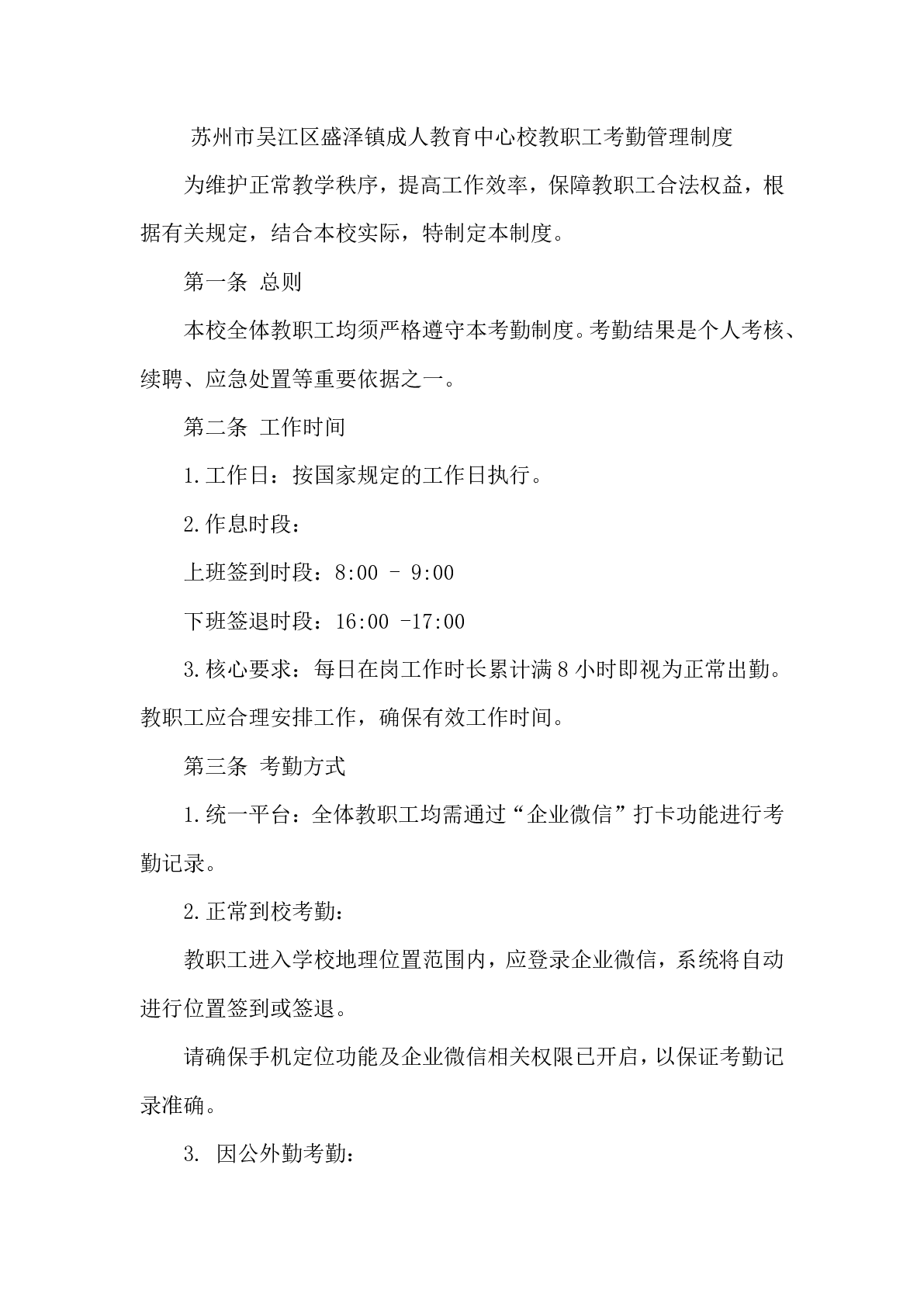 苏州市吴江区盛泽镇成人教育中心校教职工考勤管理制度