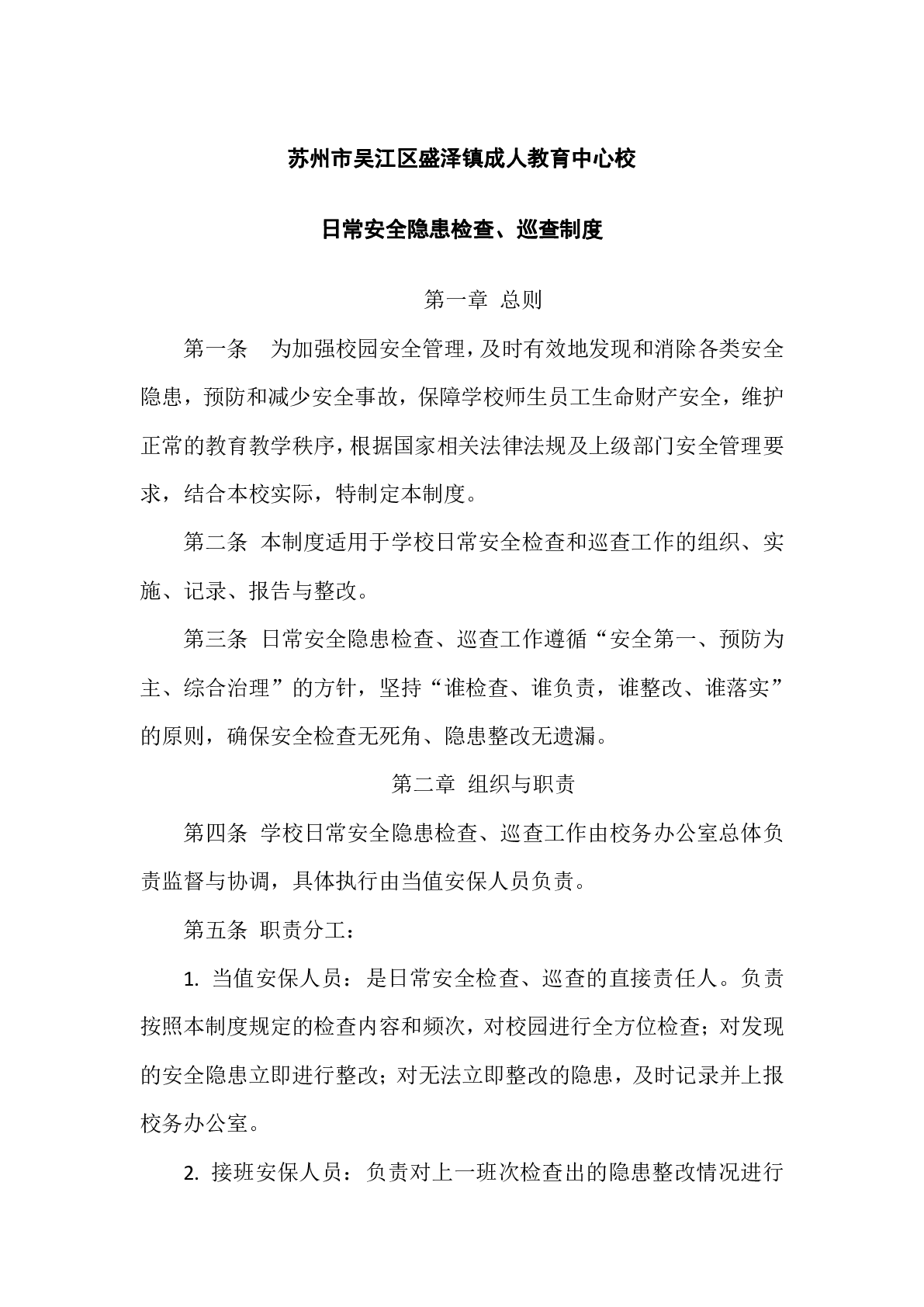 苏州市吴江区盛泽镇成人教育中心校 日常安全隐患检查、巡查制度