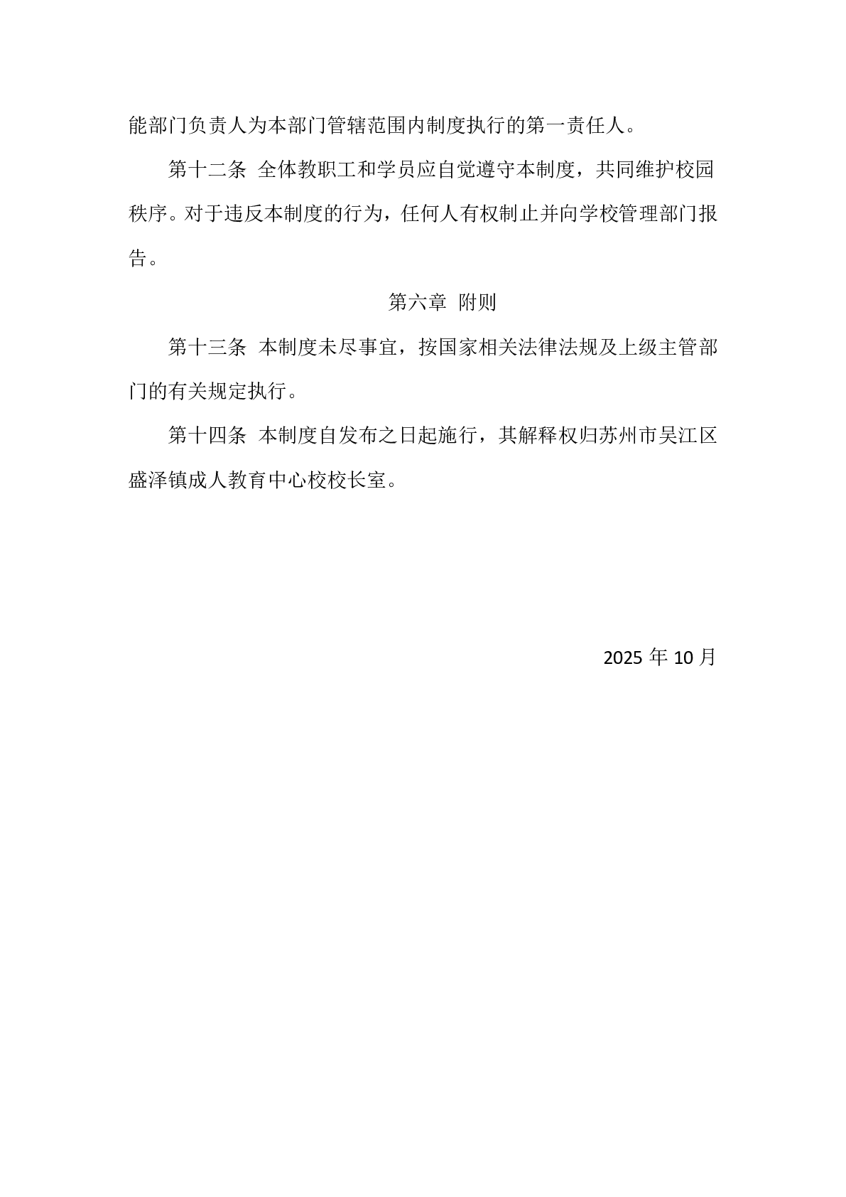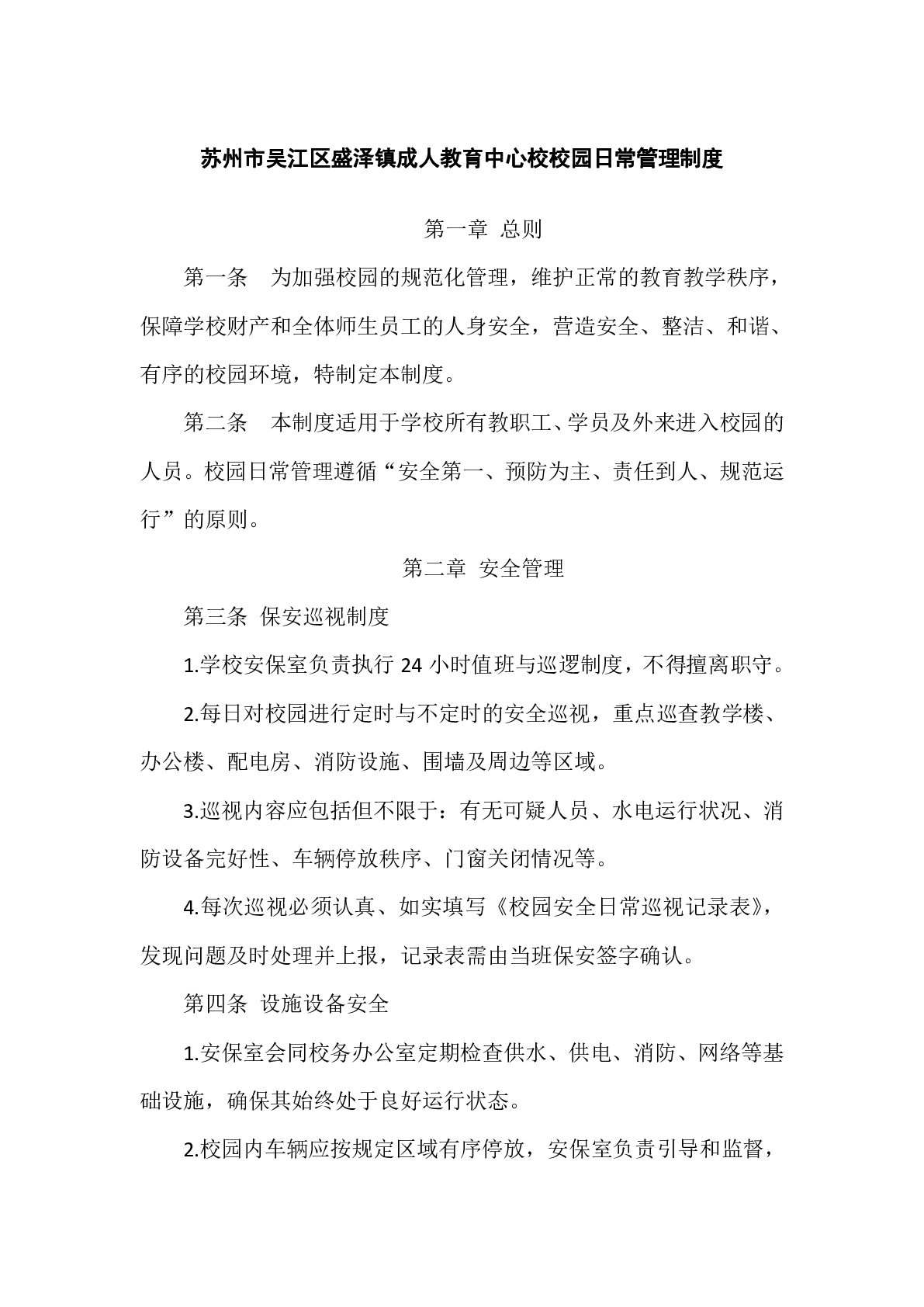 苏州市吴江区盛泽镇成人教育中心校校园日常管理制度