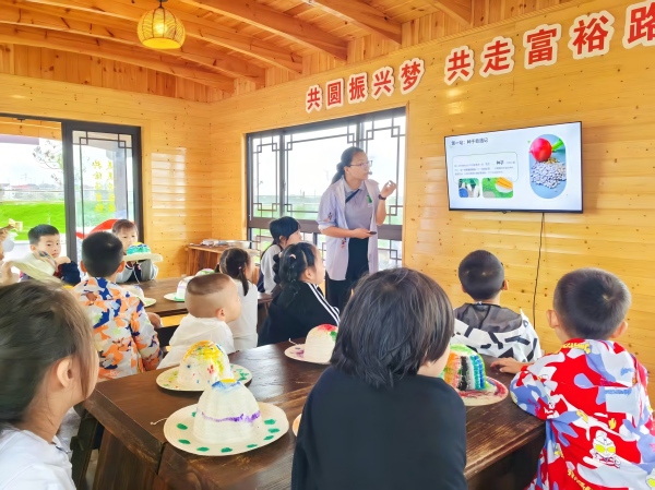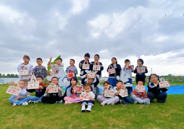 中午时分,孩子们围坐在一起,共同品尝萝卜条蘸酱的美味,现场咀嚼声与赞叹声交织,满是对劳动成果的喜爱。下午的“自然美育” 环节同样精彩,孩子们用萝卜头进行拓印创作,印出了各式各样的图案。创作完成后,大家互相分享自己的作品,传递着创作的喜悦。